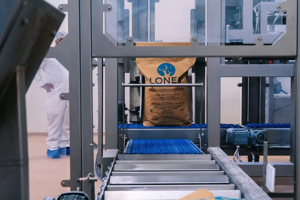El concentrado líquido se seca por atomización, se enfría, estabiliza y pasa por controles de peso, detección de metales y empaque automatizado para asegurar la integridad del lote.